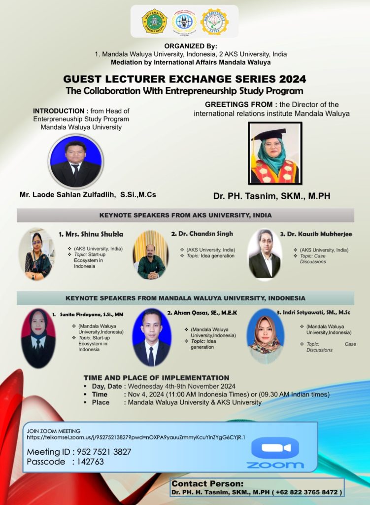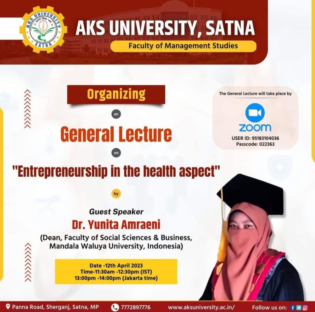 - International Guest lecture on Entrepreneurship in the health aspect as MOU exchange program with Mandala Waluya University ,Indonesia